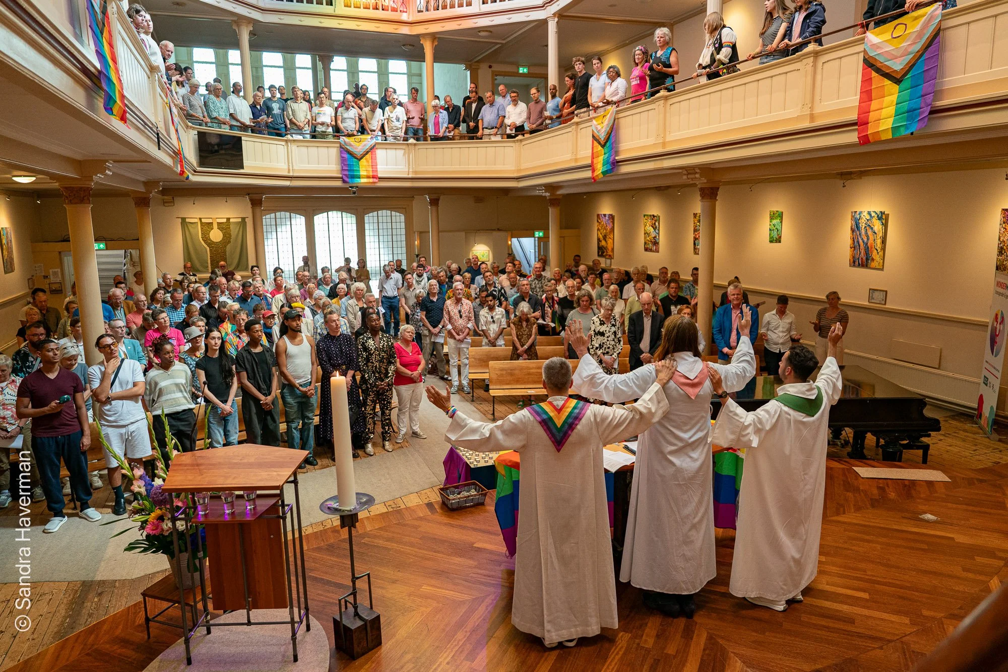 Gezamenlijke zegen aan het eind van de Pride Kerkdienst